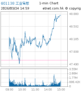 | 601138 | 工业富联 | 48.840 | +1.240 | +2.605% | 53.42亿 | 27.4382 | 沪股通 | |